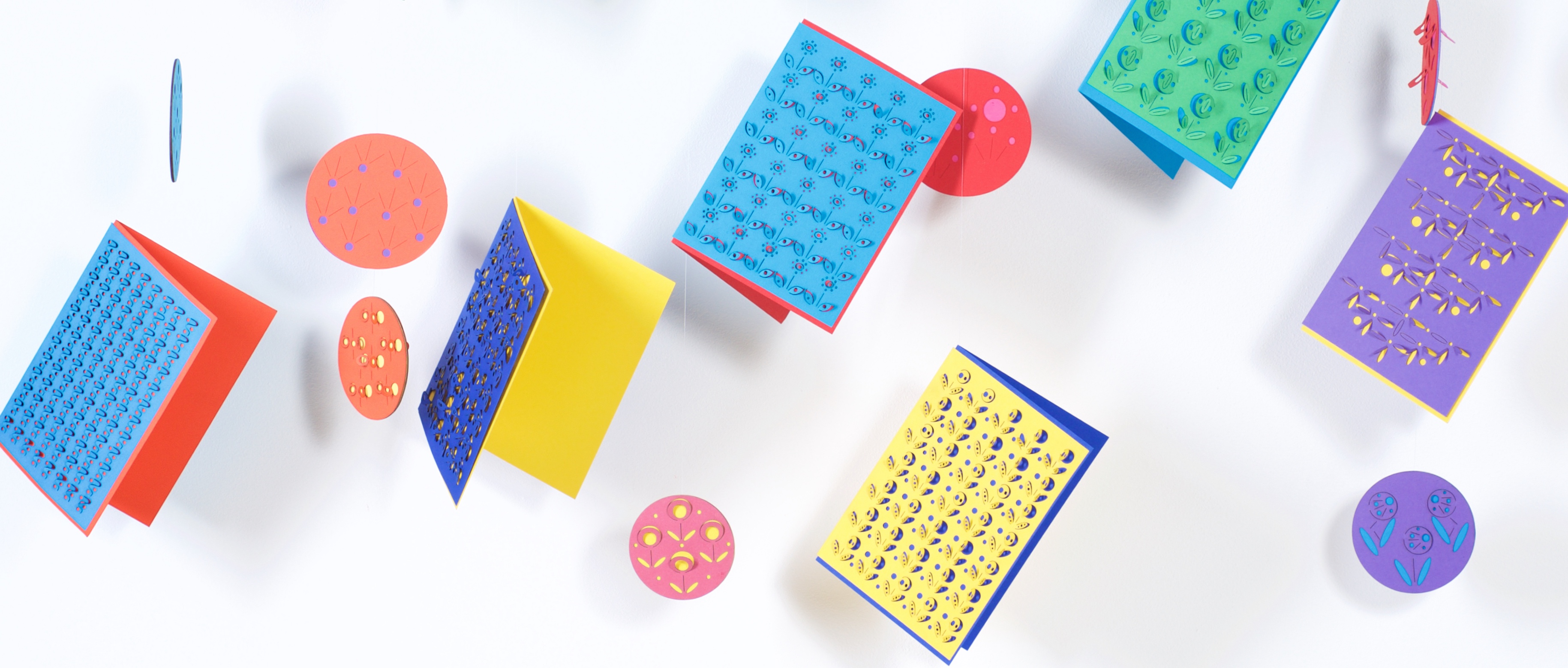 These laser/cutter designs are used to make cards, single hanging installations and framed pieces.